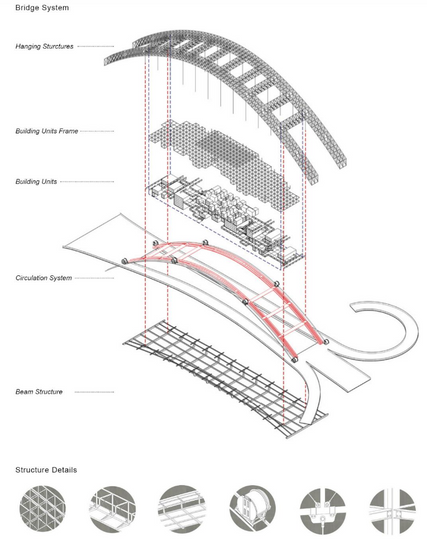 This studio asked a question about how to create a new typology combining housing and bridge together functionally and structurally? After the site analysis, we decided to design a new attraction serving not only transportation but also cultural and commercial uses.